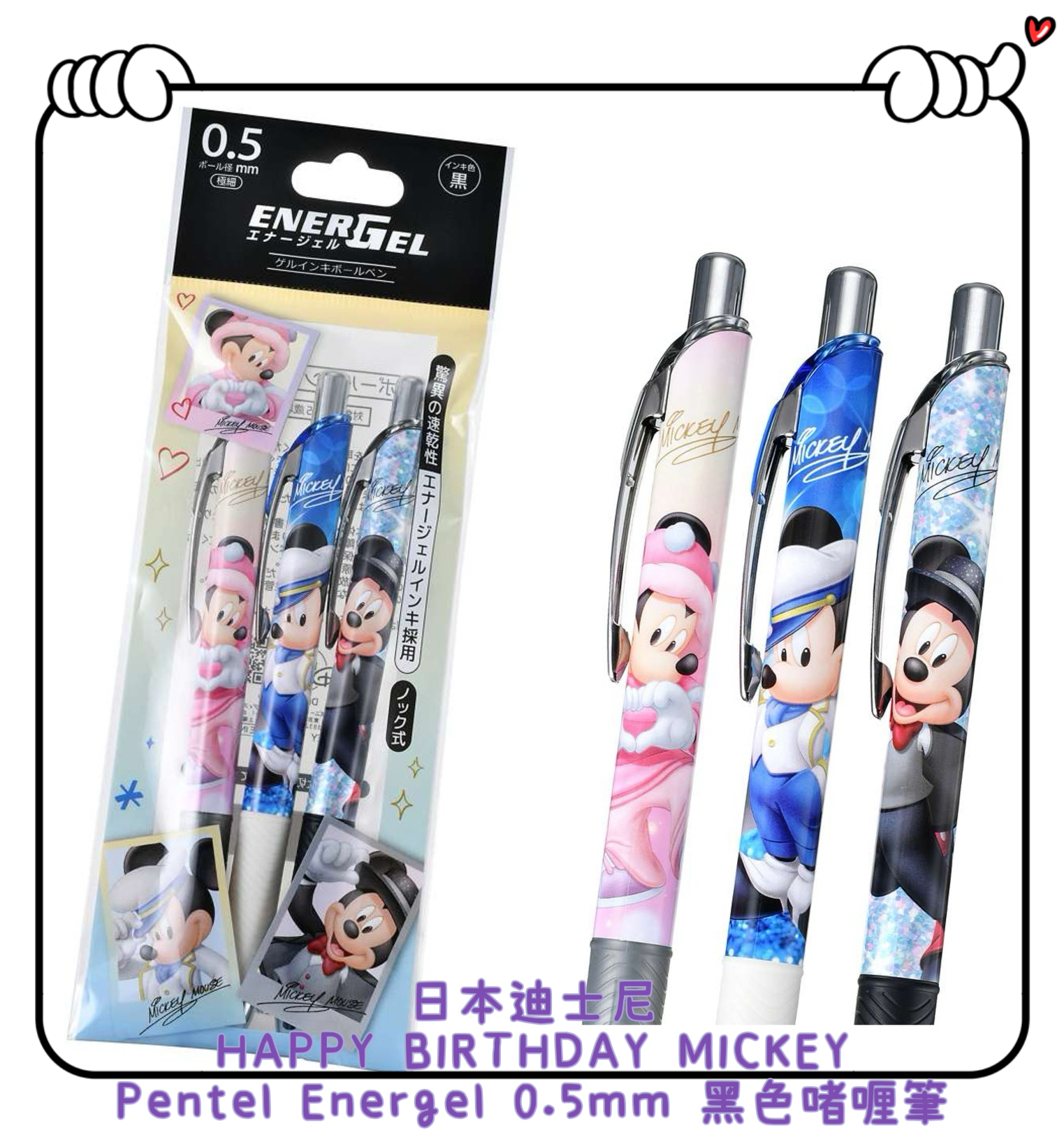 ✈️日本直送🇯🇵預訂🛍️日本迪士尼 Disney HAPPY BIRTHDAY MICKEY系列 Pentel Energel 0.5mm 黑色啫喱筆