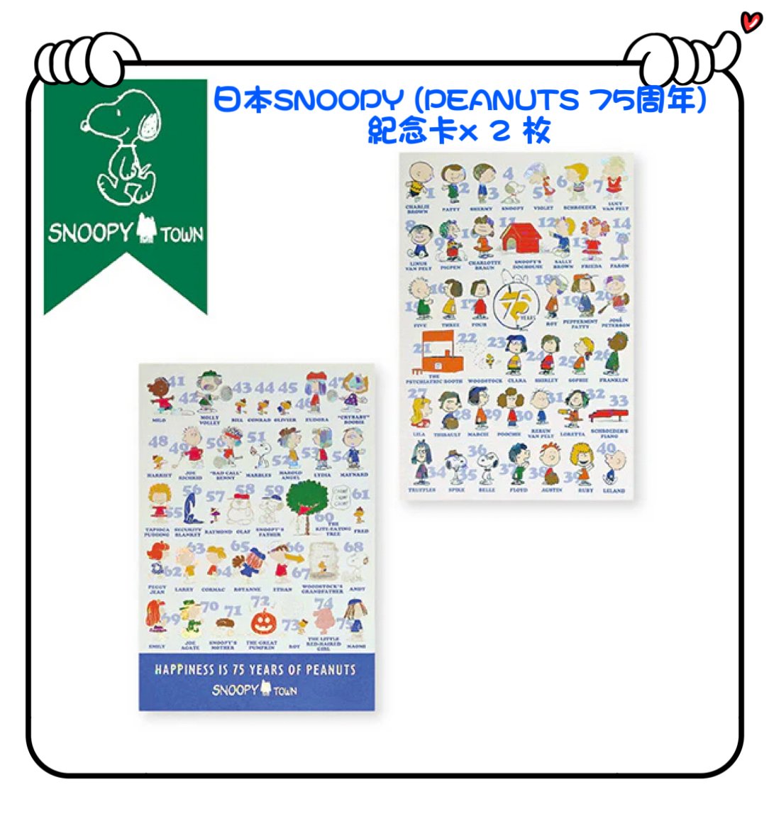 ✈️日本直送🇯🇵預訂🛍日本SNOOPY (PEANUTS 75周年) 紀念卡x 2 枚