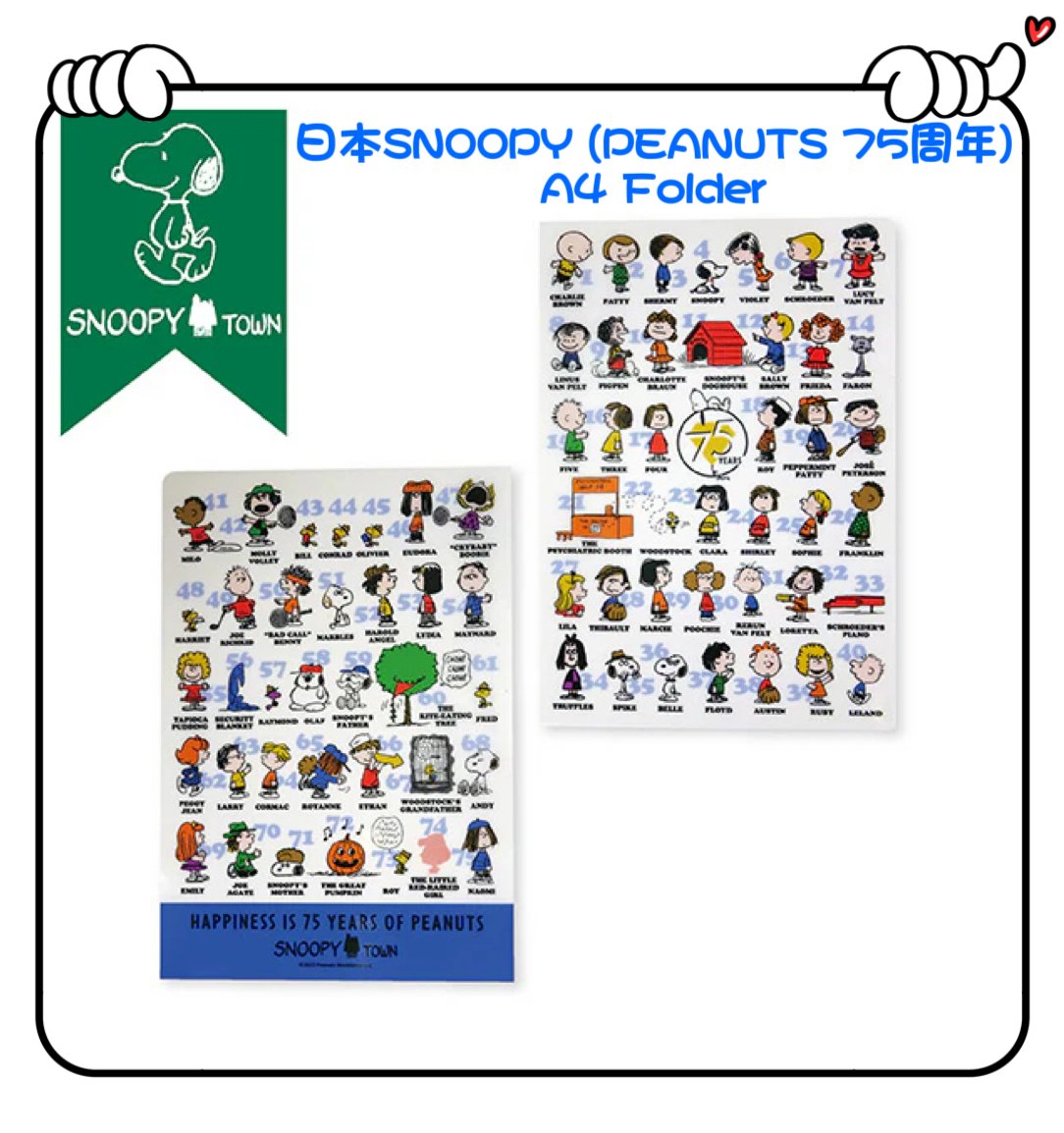 ✈️日本直送🇯🇵預訂🛍日本SNOOPY (PEANUTS 75周年) A4 Folder