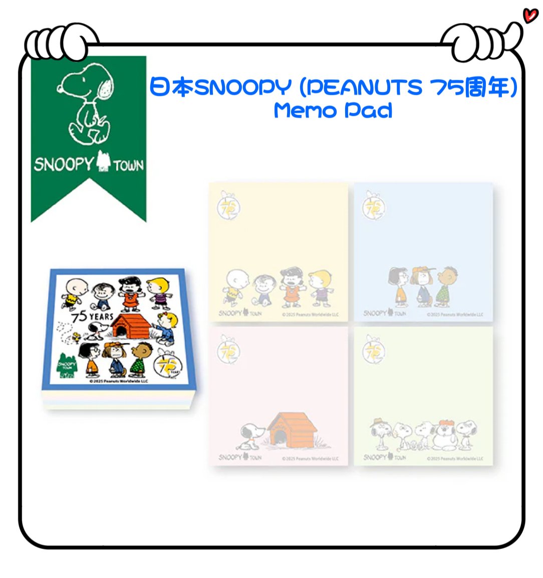✈️日本直送🇯🇵預訂🛍日本SNOOPY (PEANUTS 75周年) Memo Pad