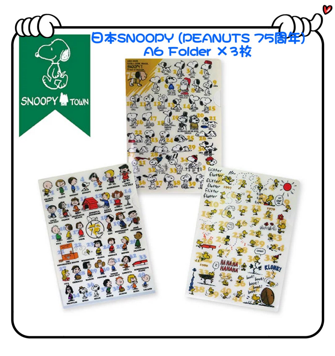 ✈️日本直送🇯🇵預訂🛍 日本SNOOPY (PEANUTS 75周年) A6 Folder ×3枚