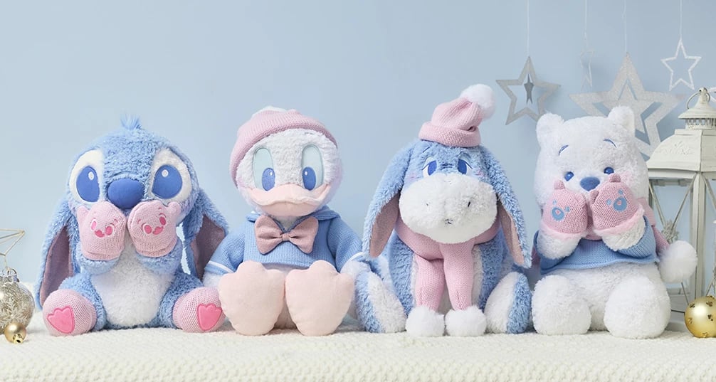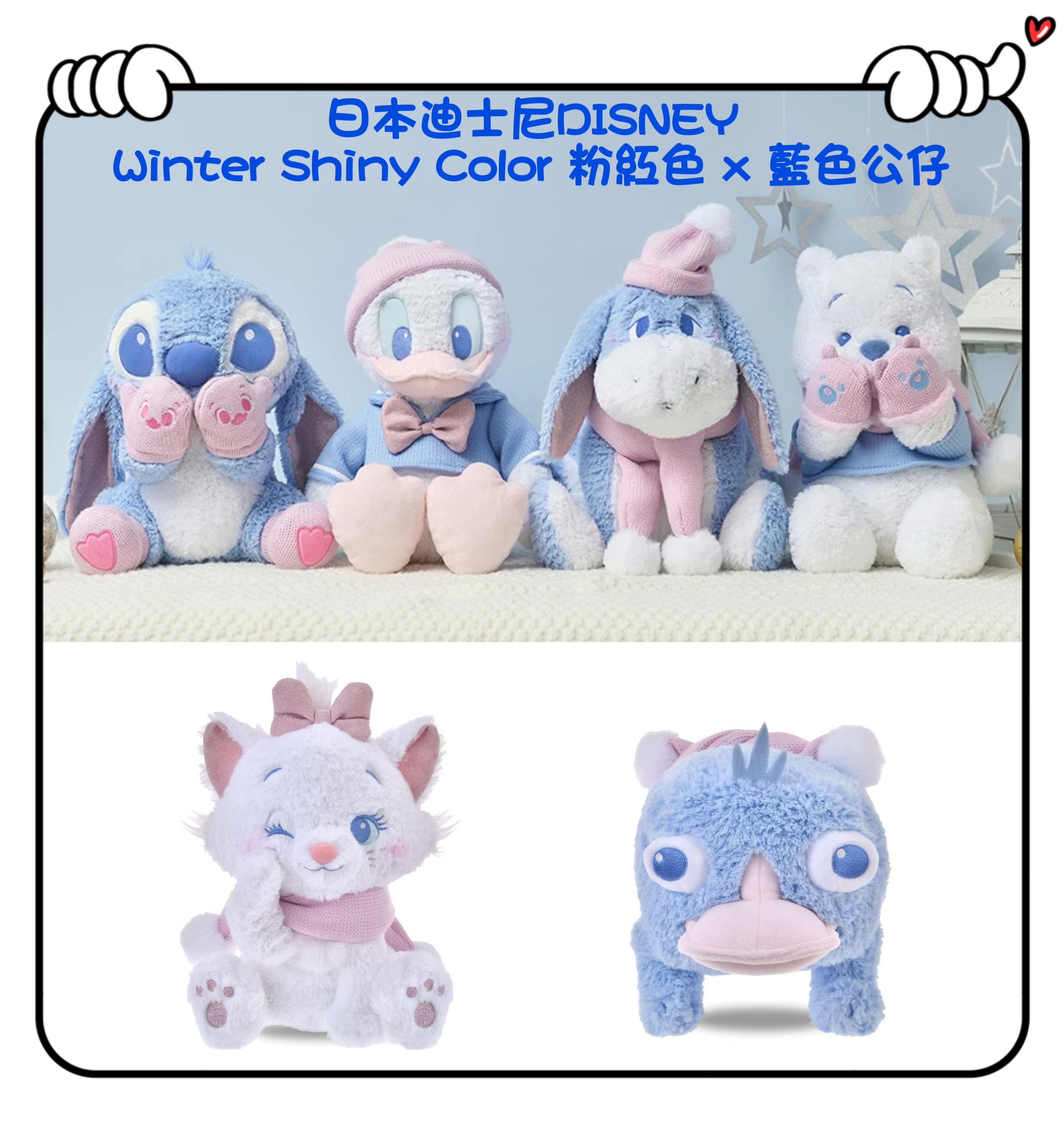 日本迪士尼DISNEY Winter Shiny Color 粉紅色 x 藍色公仔( Stitch / Winnie the Pooh / Eeyore / Donald Duck / Marie / Perry )